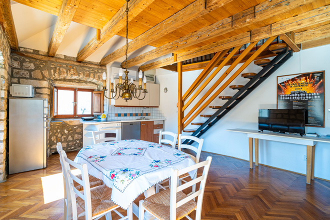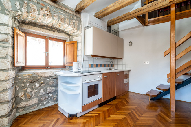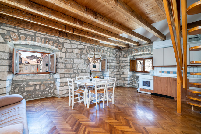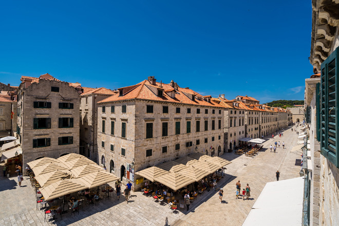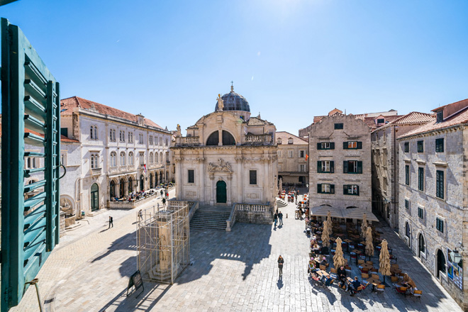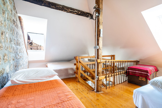 A large attic duplex studio apartment with a direct view over Stradun (main street) and Sveti Vlaho Church. You can watch concerts and performances from the window.